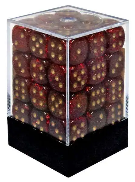 Pack of 36 count 12mm 6-sided d6 dice. Glitter Ruby & Gold [CHX27904]