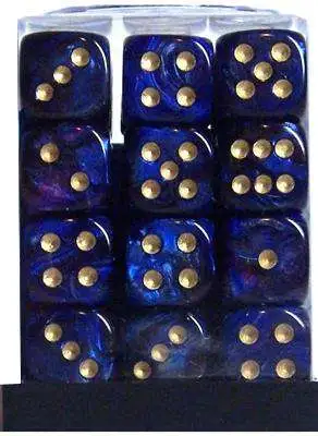 Pack of 36 count 12mm 6-sided d6 dice. Scarab Purple with Gold [CHX27827]