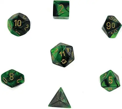 Signature dice are a compilation of the best selling colors of new dice released in the past few years. It includes a wide variety of colors and materials, but each is a unique and interesting addition to any dice collection. This set contains one d20, one d12, two d10 (00-90 and 0-9), one d8, one d6, and one d4.