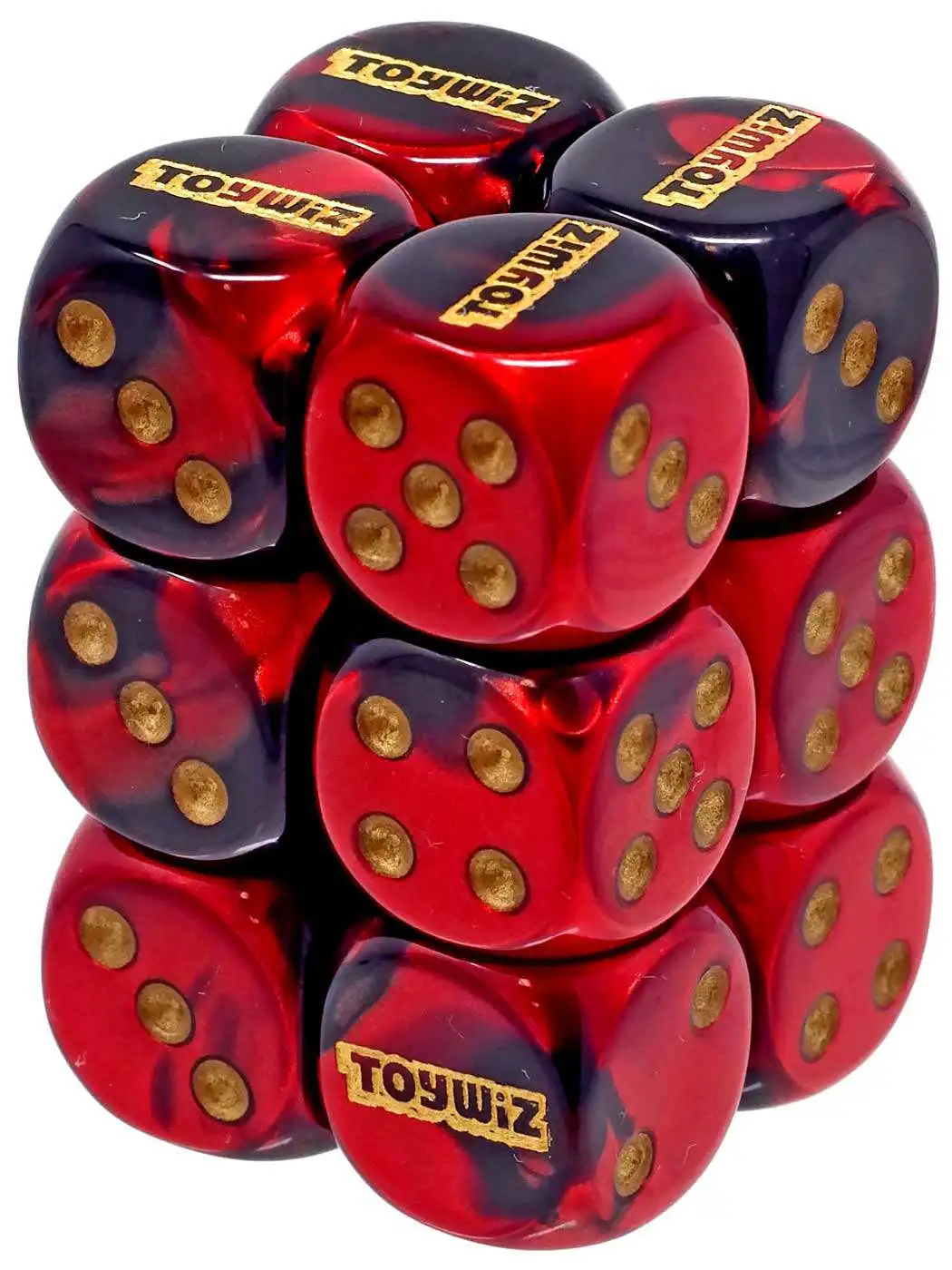 Pack of 12 count 16mm 6-sided d6 dice. The ToyWiz logo replaces the 6.