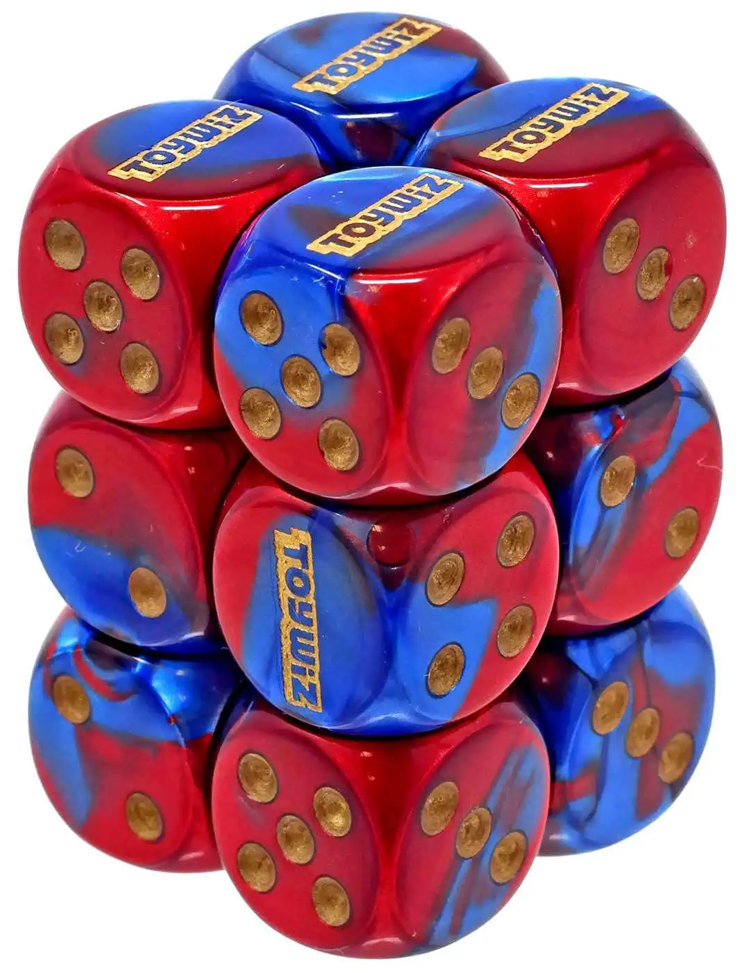 Pack of 12 count 16mm 6-sided d6 dice. The ToyWiz logo replaces the 6.