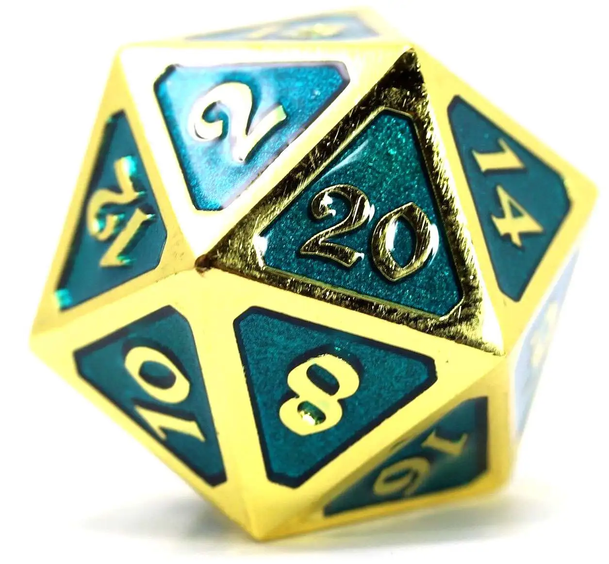 New โค๏ธ Mythica Dire Shiny Gold White D20 Metal Polyhedral Die ๐