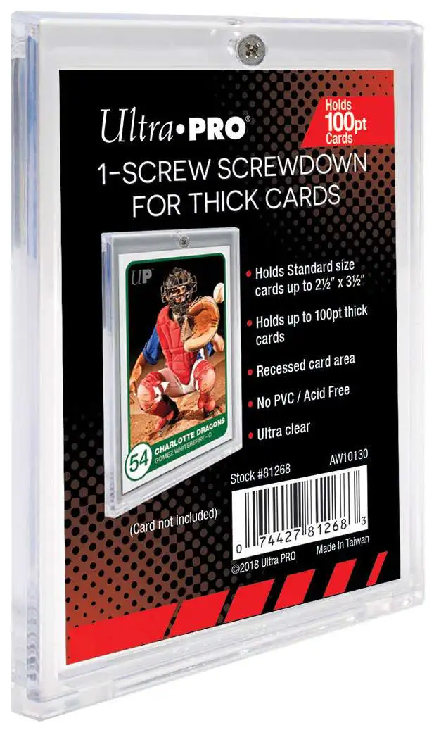 Specialty holder designed with 100pt thick card recess. Holds 2-1/2″ x 3-1/2″ (63.5 mm x 88.9 mm) standard sized card. 2-piece ultra clear holder with slide-in hinge & single-screw closure. Acid free, No PVC. (Card not included)