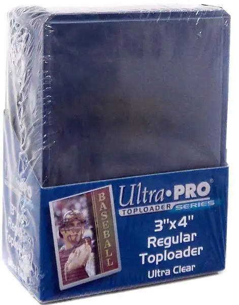 3″ x 4″ (63.5mm x 88.9mm) regular toploader for standard size and thickness cards. Rigid plastic encloses card and keeps it clean while preventing damage. 25 toploaders per pack.