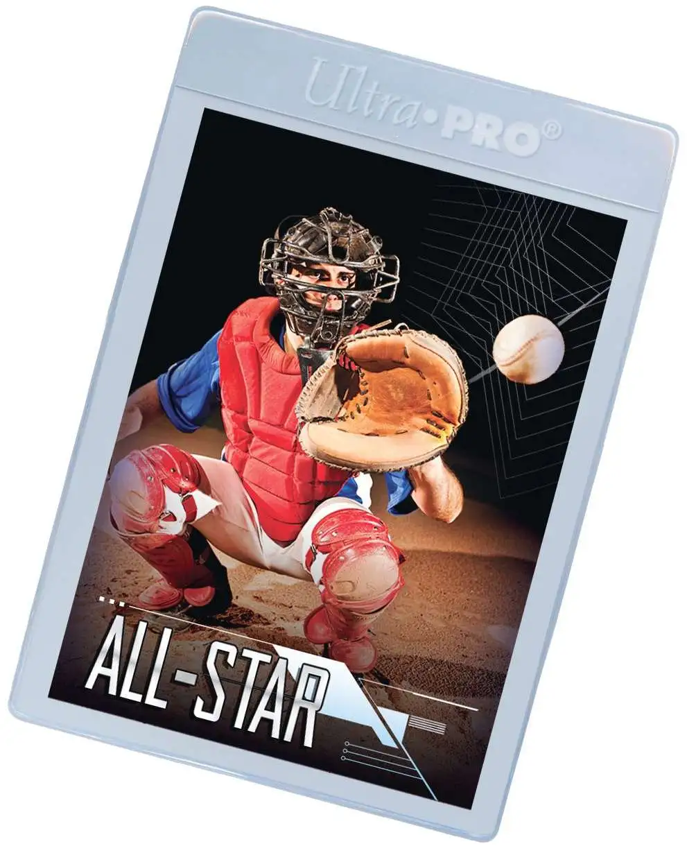 Protect your valuable trading card and gaming cards with Ultra PRO’s Semi-Rigid tall card holding sleeves. These thin yet sturdy sleeves are easy to ship and provides added structural integrity to your card for storage and during shipping. Designed with a 1/2″ lip for easy handling and made with clear PVC, these holders store trading cards and gaming cards up to 3-3/16″ x 4-1/4″ (80.96mm x 107.95mm) in size and up to 35 points in thickness.