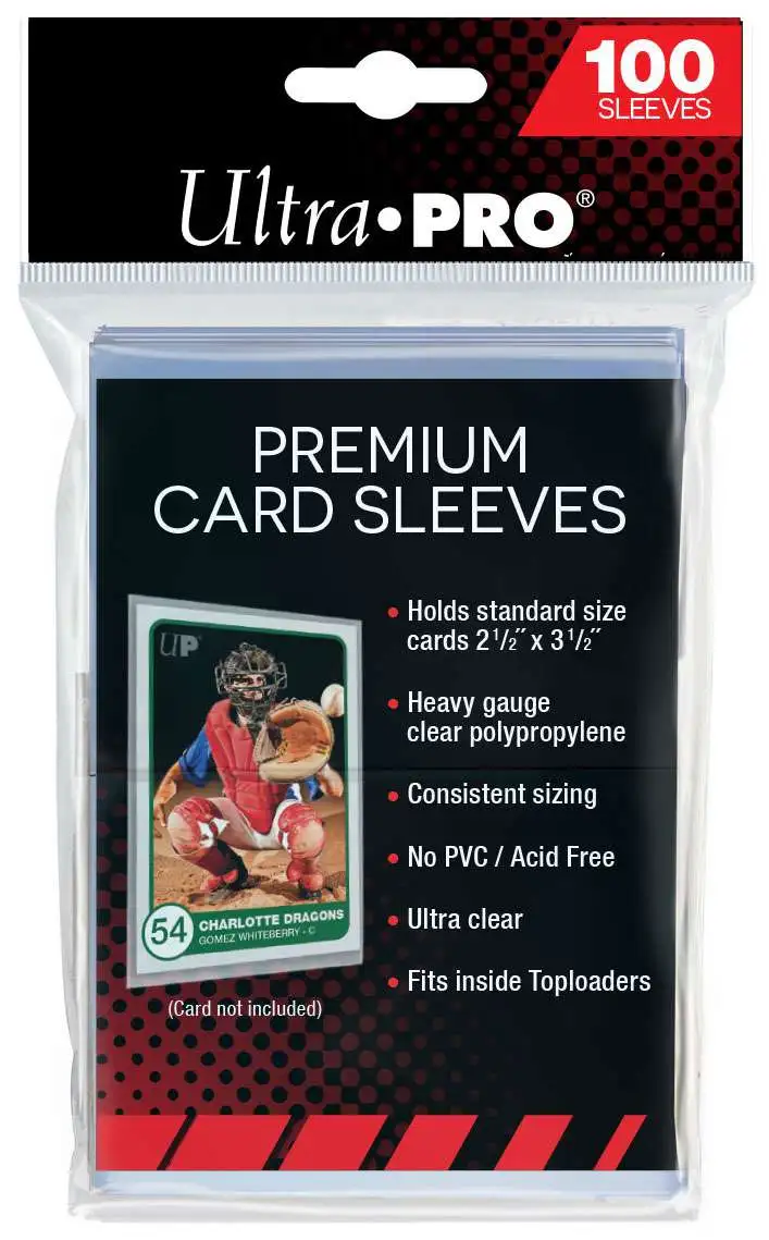 Archival-grade, acid-free and non-PVC premium card sleeves designed to hold standard 2-1/2″ X 3-1/2″ cards. Made from heavy-gauge clear polypropylene for improved protection. Ideal for use with toploaders. Made in the U.S.A. 100 count per pack.