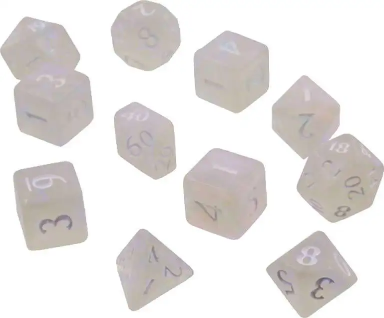 From Ultra Pro International. The Eclipse 11 Dice Set is a gamer’s best friend! While most RPG dice sets include only the polyhedral 7, Ultra PRO is here to help you UP your game with additional dice needed for modern RPG games. Each set includes D4, four D6, D8, two D10, D12, and two D20! The dice come in a 2-piece acrylic storage box with enough space for up to 40 dice, and sized to fit pens, markers, or other small RPG accessories. Eclipse Dice feature a shimmering finish that makes every roll magical!