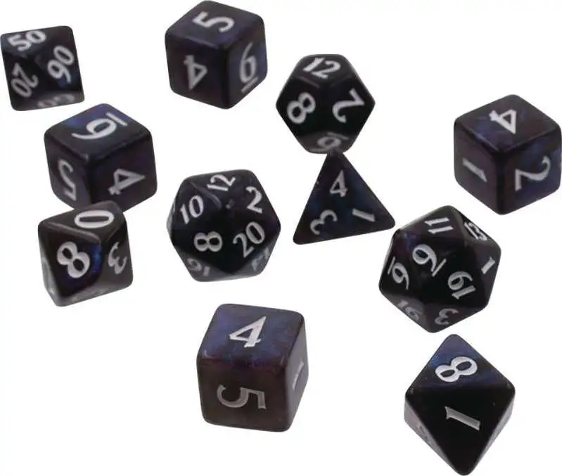 From Ultra Pro International. The Eclipse 11 Dice Set is a gamer’s best friend! While most RPG dice sets include only the polyhedral 7, Ultra PRO is here to help you UP your game with additional dice needed for modern RPG games. Each set includes D4, four D6, D8, two D10, D12, and two D20! The dice come in a 2-piece acrylic storage box with enough space for up to 40 dice, and sized to fit pens, markers, or other small RPG accessories. Eclipse Dice feature a shimmering finish that makes every roll magical!