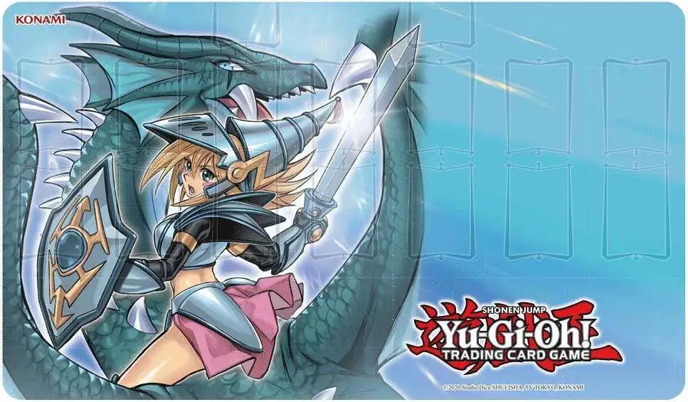 Watch your back! Dark Magician Girl the Dragon Knight descends with alternate artwork in Dragons of Legend: The Complete Series, and now you can show-off this special variant art with the Dark Magician Girl the Dragon Knight Game Mat!